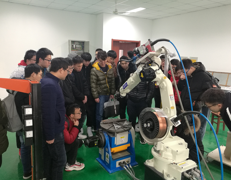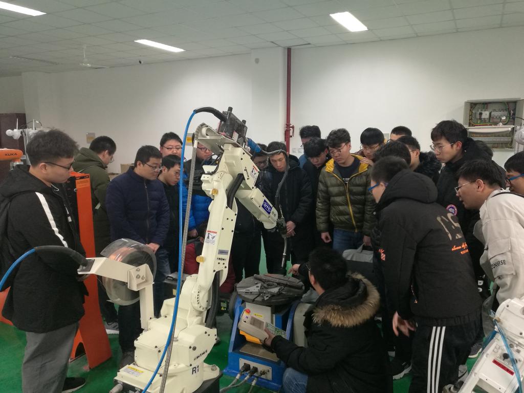 新年伊始,万象更新。新校园,新风貌。在学院的统筹安排和指导下,机器人工程系完成了机器人系统的集中、搬迁、安装和调试等工作,形成了具有KUKA,ABB,安川,OTC和史陶比尔五个品牌的机器人实验室,面向全校师生提供全面开放的综合实验平台。1月2日,机器人实验室首次接待王艳辉老师带领的焊接专业师生进行试验。