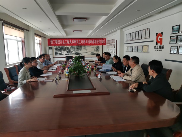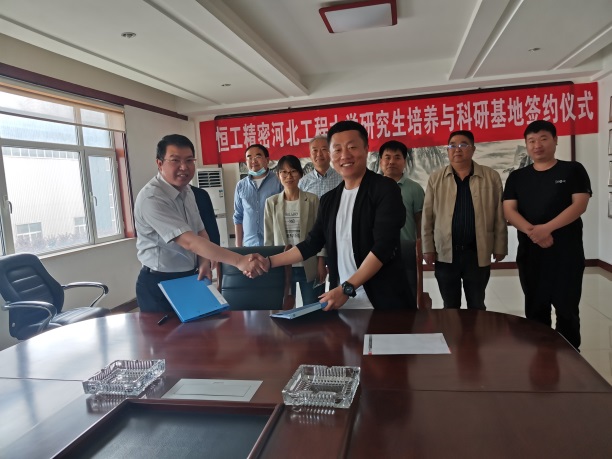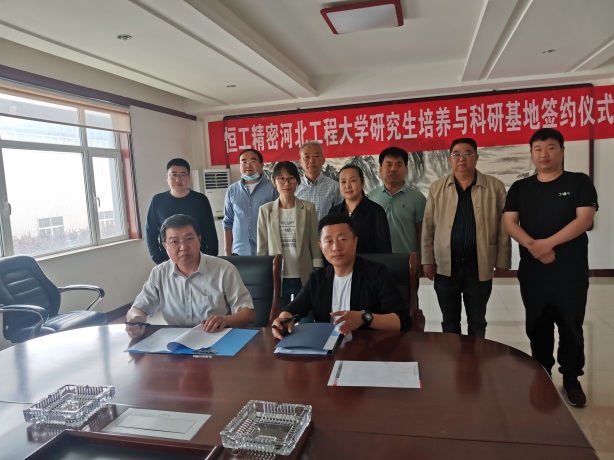 2021年5月12日,必赢437官方网站副院长李河宗,教师代表崔坚教授、曹晶晶、张建宇和刘晓立博士前往邯郸成安河北恒工精密装备股份有限公司签订研究生培养与科研基地协议,邯郸成安县科工局局长及企业相关领导出席了签约仪式,并就研究生培养具体实施方案及产学研合作项目进行了讨论与交流。