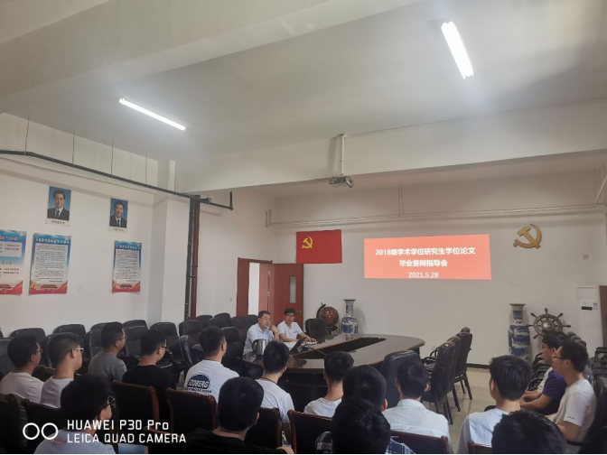 学院副院长李河宗就硕士研究生学位论文答辩工作进行指导。他先从学位论文评审专家的角度出发,从学位论文的撰写技巧、评审流程、答辩要求三个方面对毕业生进行指导,强调同学们要端正学习态度,积极主动地与导师进行沟通。同时,指出学位论文答辩工作,是硕士阶段研究工作的最后一站,要求同学们高度重视,高质量完成答辩工作。研究生教育管理办公室翟志波老师就答辩时间、答辩地点进行了具体安排,并向毕业生详细说明如何准备答辩工作。