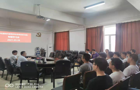 为深入学习贯彻《深化新时代教育评价改革总体方案》精神,完善立德树人体制机制,建立科学化教育评价导向,进一步推动教育评价改革进程,促进学院研究生教育高质量发展, 5月28日下午,副院长李河宗带领研究生教育管理人员与研究生在403会议室召开《总体方案》专题学习会。
