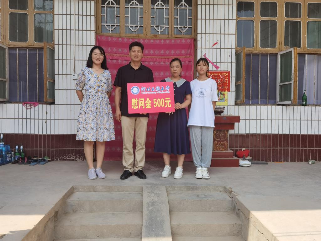 此次活动学院认真组织,制定家访计划表,分别赴永年区和肥乡区等地,共计行驶两百多公里,对四名贫困生进行了逐一家访。通过老师与学生家长之间的深入交谈,了解到这四名学生的家庭都面临着不同程度和不同类型的生活困难。老师将同学们的在校情况对家长进行了反馈,并宣传了党和国家、学校的资助政策,派发资助政策宣传册,同时积极听取了家长对学校资助工作、学生就业等方面的一些建议。最后,学院代表学校为每个家庭送去了慰问金。