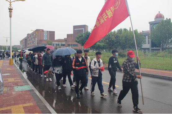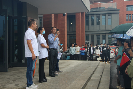 在学院楼前举行的启动仪式上,统战部部长梁晓珍受邀出席,学院党委书记潘越作了动员讲话,学工办辅导员老师和2021级学生代表150余人参加了此次活动。