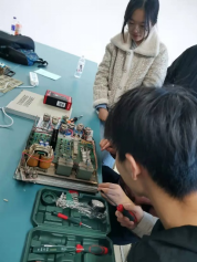 疫情期间,在学生不能深入企业实践的情况下,如何保证生产实习教学得以展开,是测控系老师面对的一道难题。经过全体测控系老师集思广益、反复研讨,制定了2018级的生产实习计划:充分利用实习经费,购置电子设备、工具,安排学生进行废旧电子仪器的拆装实习,并依据所学理论知识,完成仪器电路图的绘制,作为实习成果上交。实习过程中以分组形式进行,每一小组成为一个团队,小组长作为团队负责人统筹整个实习过程,包括实习进度的安排、组员任务分工等,每位同学都有自己的任务,完成一部分电路的测试、绘制,最终由组长对整个电路进行整合。实习期间,每天安排一名专业教师进行指导。