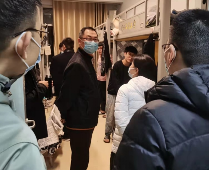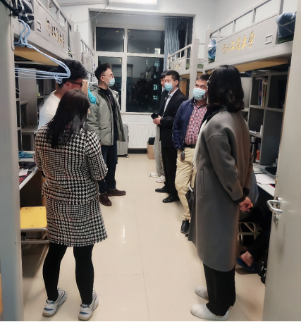 3月19日晚,学院党委书记潘越、副书记王文军带领在校辅导员深入宿舍看望学生,并对宿舍安全、卫生、上网课情况进行检查。