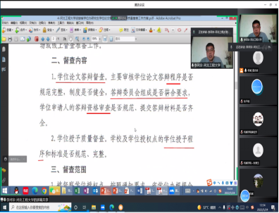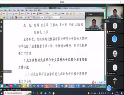 为进一步落实《河北省政府学位委员会关于开展2022年度研究生学位论文答辩、学位授予质量督查的通知》文件精神,2022年5月25日下午,必赢437官方网站在腾讯会议召开了迎接省学位办研究生学位论文答辩和学位授予质量督查工作布置会议,会议由副院长李河宗主持,全体研究生导师及研究生管理办公室工作人员全体参会。