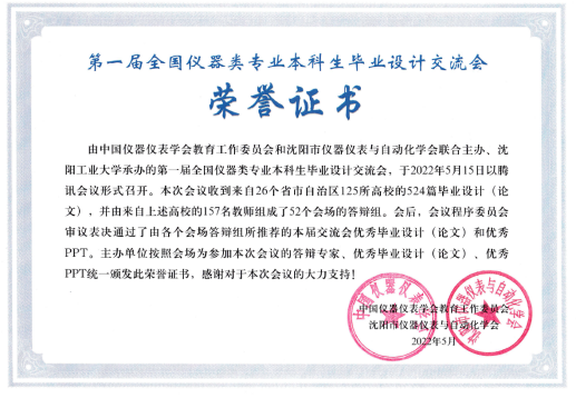 6月10日,由中国仪器仪表学会教育工作委员会举办的全国第一届仪器类毕业设计交流会经过各答辩组评选推荐,会议程序委员会审议表决通过了本次会议的优秀毕业设计和优秀PPT。本次毕设交流包括来自天津大学、南京大学、哈工大、吉大、南航等众多985高校的共计524篇论文,评选出52个优秀PPT,必赢官网测控系18级学生柴志铜、杨钰脱颖而出,荣获优秀PPT奖项。